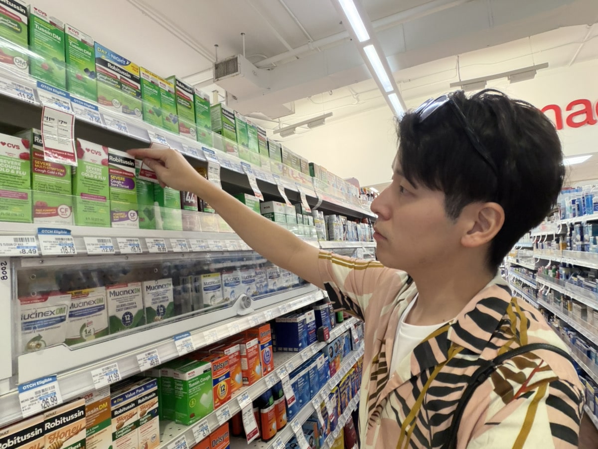 研修として海外のドラッグストアを視察し、日本における医薬品販売との違いを学びます。